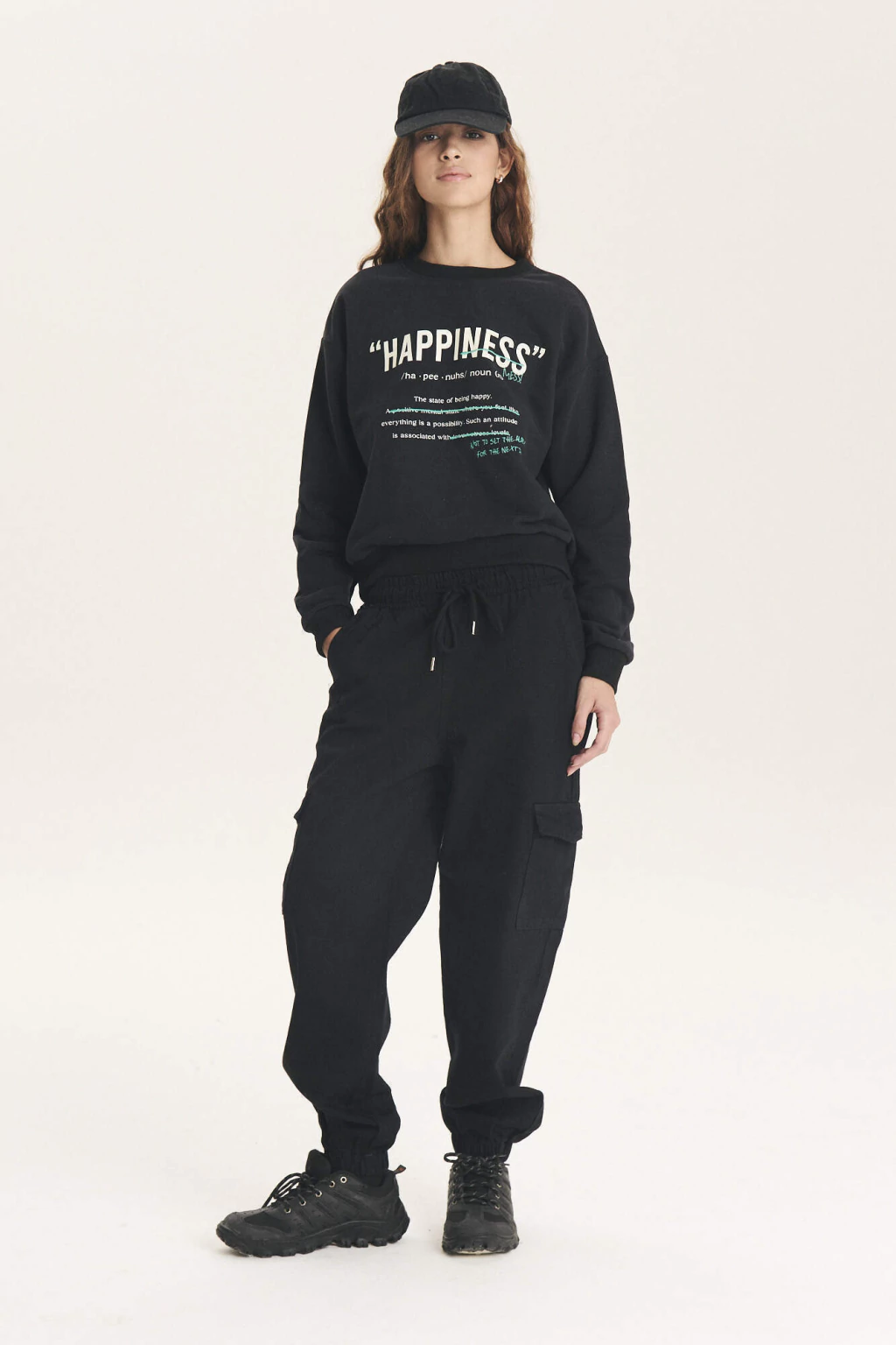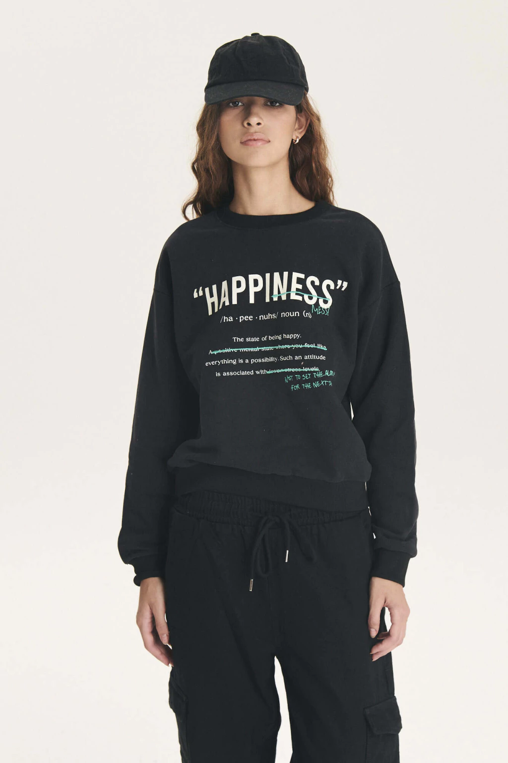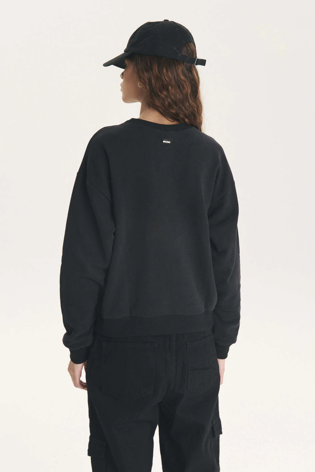 Descripción: Buzo de rústico con estampa en delantero y detalle de bordado. La modelo usa un talle S y mide 1,70 mts.