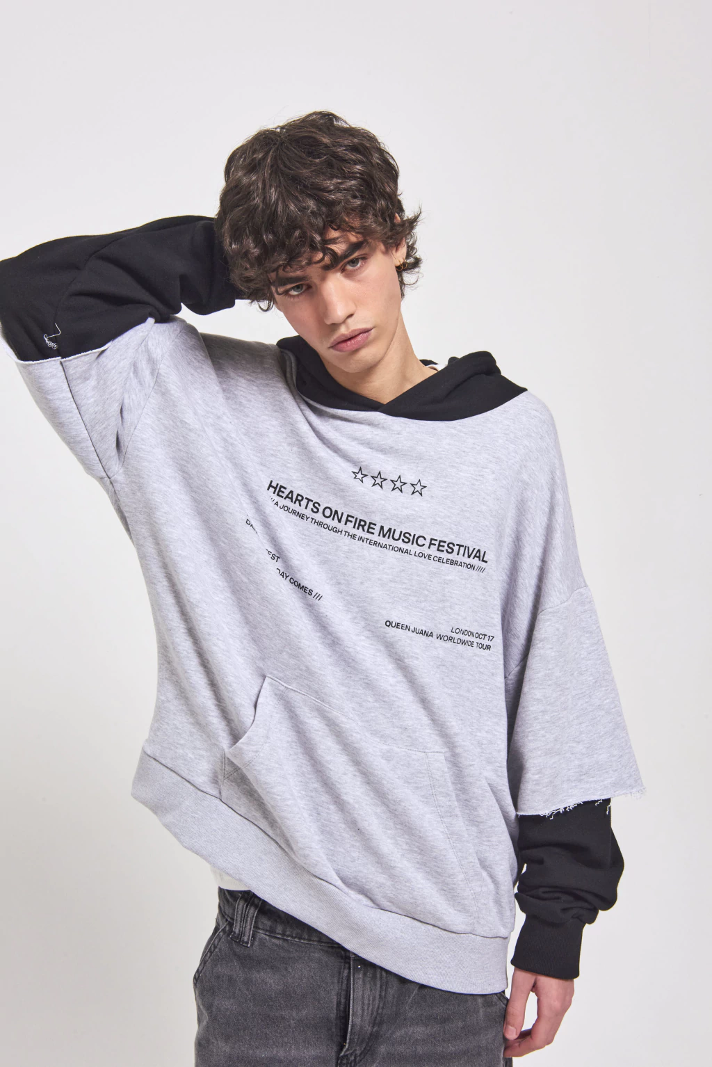 CANGURO UNISEX CALCE OVERSIZE EN RUSTICO DE ALGODÓN-POLIÉSTER, CON MANGAS Y CAPUCHA A CONTRATONO Y SOBREMANGAS AL CORTE EN TELA BASE A TONO. LA CINTURA Y LOS PUÑOS SON EN COMPLEMENTO MORLEY, Y LLEVA UNA ESTAMPA CENTRAL A CONTRATONO EN EL FRENTE. LA MODELO MIDE 1,65M Y USA TALLE S, MIENTRAS QUE EL MODELO MIDE 1,82M Y USA TALLE L. ¡DESTACATE CON ESTE BUZO ÚNICO Y LLENO DE ESTILO!.
