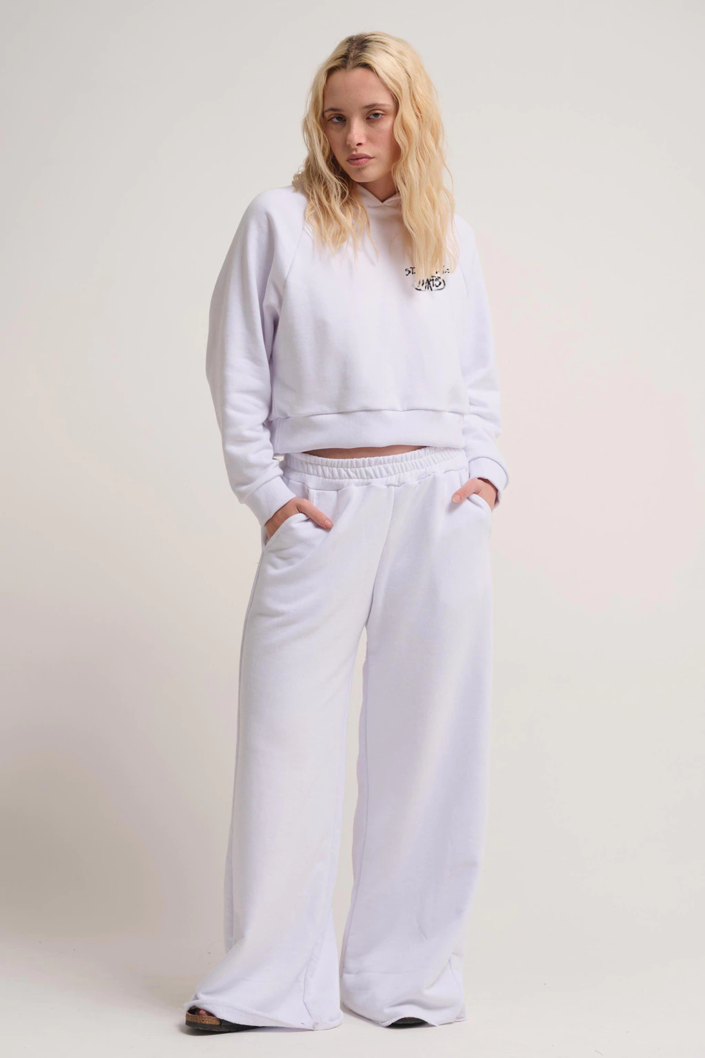 CANGURO CROP EN RÚSTICO 100% ALGODÓN CON MANGAS TIPO RANGLAN Y ESTAMPA TIPO GRAFFITI EN DELANTERO Y ESPALDA. LA MODELO MIDE 1,70 M Y LLEVA UNA TALLA S. PERFECT MATCH CON JOGGER LOCK.